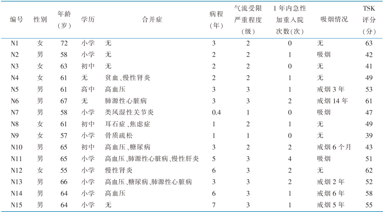 关键词: 肺疾病,慢性阻塞性, 运动恐惧, 发生机制, 扎根理论, 护理