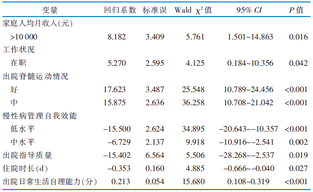 Table 4 Generalized linear model analysis of discharge readiness in patients with spinal vascular malformation after surgery(n=192)