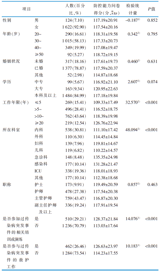 呼和浩特市三级甲等综合医院护士的传染病突发事件防控能力现状及影响因素研究