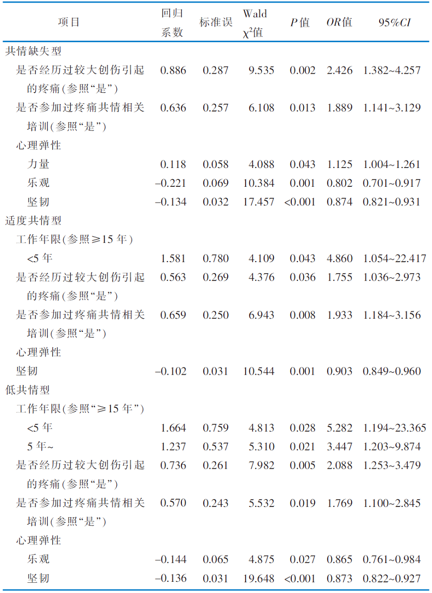 Table 5 Multinomial Logistic regression analysis of the latent profiles of empathy for pain among orthopedic nurses(n=2 351)
