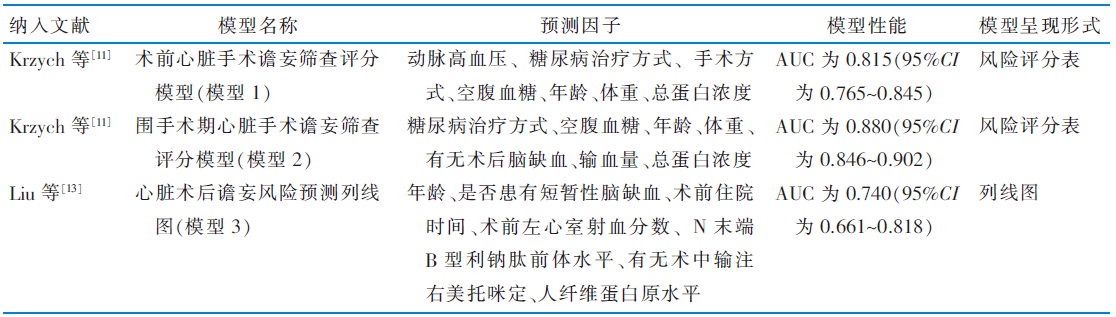 Chen M, Yang AM, Sun L. Systematic review and meta-analysis of risk prediction models for postoperative delirium in adult patients after cardiac surgery[J/OL]. Chin J Clin Thor Cardiov Surg:1-11[2025-07-06]. http://kns.cnki.net/kcms/detail/51.1492.R.20250226.1603.004.html.