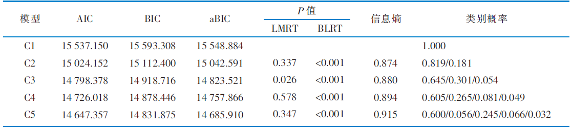 表2 老年HIV感染者心理社会适应潜在剖面模型的拟合指标(n=408)