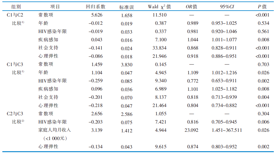 表4 老年HIV感染者心理社会适应潜在剖面影响因素的多因素分析