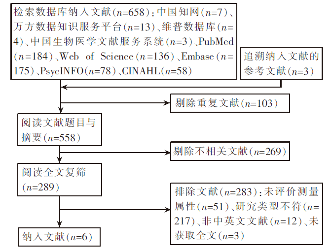 目的 系统评价烧伤患者身体意象特异性评估工具的测量学特性,旨在为选择适宜的评估工具提供借鉴。 方法 计算机检索中国知网、万方数据知识服务平台、维普数据库、中国生物医学文献服务系统、PubMed、Embase、Web of Science、PsycINFO和CINAHL。检索评价烧伤患者身体意象特异性评估工具测量学特性的研究,检索时限为建库至2024年4月15日。2名研究者独立对检索的文献进行筛选、查找全文、提取信息。同时对此类评估工具测量学特性在基于共识的健康测量工具选择标准(consensus-based standards for the selection of health measurement instrument,COSMIN)指南指导下进行方法学质量和测量学特性的系统评价,并对质量等级进行评估,形成推荐意见。 结果 共纳入6项研究,包括3个烧伤患者身体意象特异性评估工具,即巴西版身体意象生活质量量表(the Body Image Quality of Life Inventory into Brazilian Portuguese,BIQLI-BP)、外观满意度量表(Satisfaction with Appearance Scale,SWAP)、德里福德外观评估量表59(the Derriford Appearance Scale 59,DAS59)。在患者报告的结局测量工具开发方面,BIQLI-BP、SWAP和DAS59的总体质量均为“模糊”。在内容效度方面,BIQLI-BP、SWAP和DAS59的方法学质量均评价为“模糊”。在结构效度方面,SWAP和DAS59的方法学质量分别评价为“良好”和“很好”,BIQLI-BP的方法学质量为“不良”。在内部一致性方面,BIQLI-BP、SWAP和DAS59的方法学质量均为“很好”。在稳定性方面,BIQLI-BP和DAS59为“未报告”,SWAP的方法学质量评价为“模糊”。在效标效度方面,BIQLI-BP和DAS59为“未报告”,SWAP的方法学质量评价为“不良”。在测量误差方面,BIQLI-BP和DAS59为“未报告”,SWAP的方法学质量评价为“模糊”。在假设检验方面,除DAS59为“未报告”外,BIQLI-BP方法学质量为“很好”,SWAP评价为“模糊”。 结论 现存烧伤患者身体意象特异性评估工具中,SWAP具有良好的测量学特性,暂时可被推荐。国内烧伤患者身体意象特异性评估工具研究数量相对不足,未来应开展更多本土化研究。