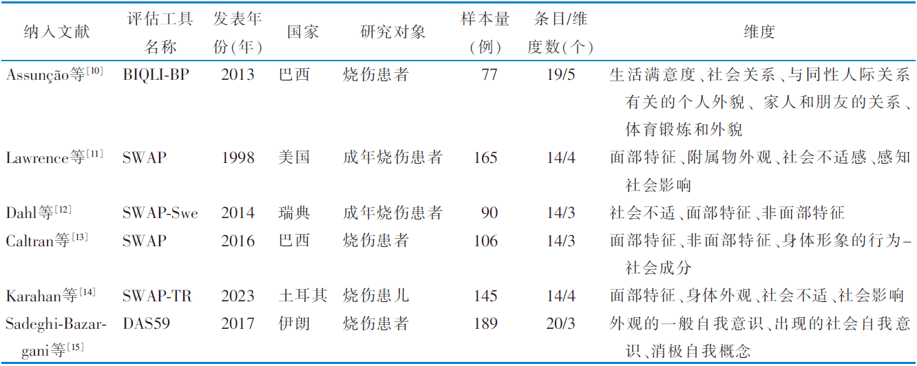烧伤患者身体意象特异性评估工具的系统评价