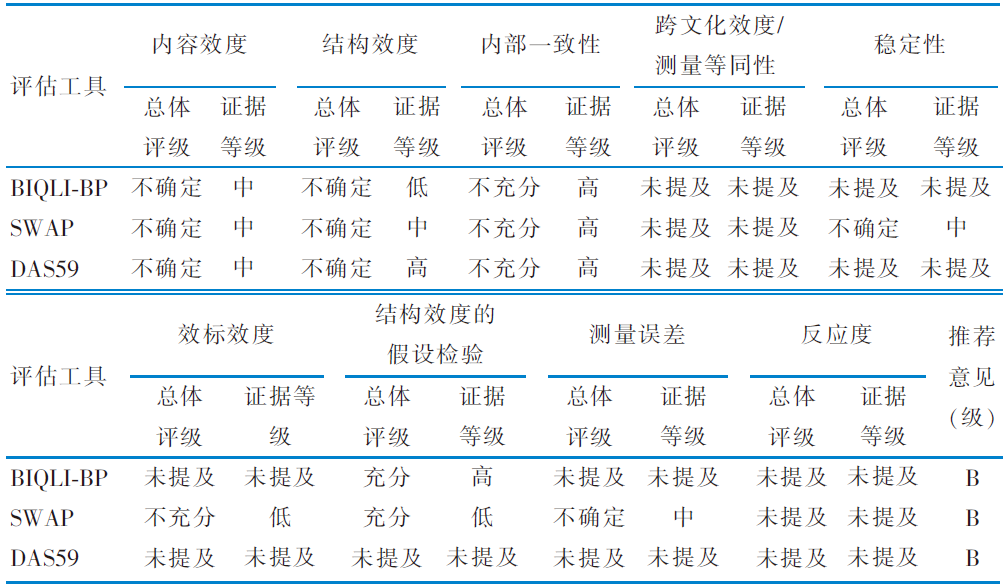 Objective The measurement characteristics of body image specificity evaluation tools for burn patients were systematically evaluated,aims to provide reference for selecting appropriate assessment tools. Methods CNKI, Wanfang data knowledge service platform,VIP database,China Biomedical Literature Service system,PubMed,Embase,Web of Science,PsycINFO and CINAHL were searched by computer to collect and evaluate the measurement characteristics of burn patients’ body image specificity evaluation tools from the establishment of the database to April 15,2024. There were 2 researchers who independently reviewed the collected literature,looked for the full text and extracted information. At the same time,the methodological quality and measurement performance of such assessment tools were systematically evaluated under the guidance of consensus-based standards for the selection of health measurement instrument(COSMIN) guidelines. Finally,the quality and strength were rated to form a recommendation. Results A total of 6 studies were included,including 3 evaluation tools for body image specificity of burn patients,namely the Body Image Quality of Life Inventory into Brazilian Portuguese(BIQLI-BP),Satisfaction with Appearance Scale(SWAP),and the Derriford Appearance Scale 59(DAS59). In the development of PROMs,the overall quality of BIQLI-BP,SWAP and DAS59 is “doubtful”. In terms of content validity,the methodological quality of BIQLI-BP,SWAP and DAS59 was evaluated as “doubtful”. In terms of construct validity,the methodological quality of SWAP and DAS59 was evaluated as “good” and “very good” respectively,while the methodological quality of BIQLI-BP was “inadequate”. In terms of internal consistency,the methodological quality of BIQLI-BP,SWAP and DAS59 was “very good”. In terms of stability,the BIQLI-BP and DAS59 were “unreported”,and the methodological quality evaluation of the SWAP was “doubtful”. In terms of criterion validity,the BIQLI-BP and DAS59 scales were “unreported”,and the methodological quality evaluation of the SWAP scale was “inadequate”. In terms of measurement errors,the BIQLI-BP and DAS59 scales were “unreported”,and the methodological quality evaluation of the SWAP scale was “doubtful”. In the aspect of hypothesis test,except that the DAS59 scale is “unreported”,the methodological quality of BIQLI-BP scale is “very good” and the evaluation of SWAP scale is “doubtful”. Conclusion Among the existing body image specificity evaluation tools for burn patients,the SWAP has good measurement performance and it can be recommended for the time being. The number of specific evaluation tools for body image of burn patients in China is relatively insufficient,and more localization studies should be carried out in the future.