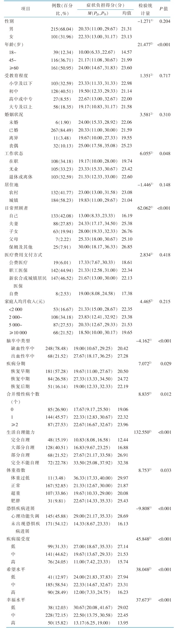 Shi D, Li Z, Yang J, et al. Symptom experience and symptom burden of patients following first-ever stroke within 1 year:a cross-sectional study[J]. Neural Regen Res, 2018, 13(11):1907-1912.