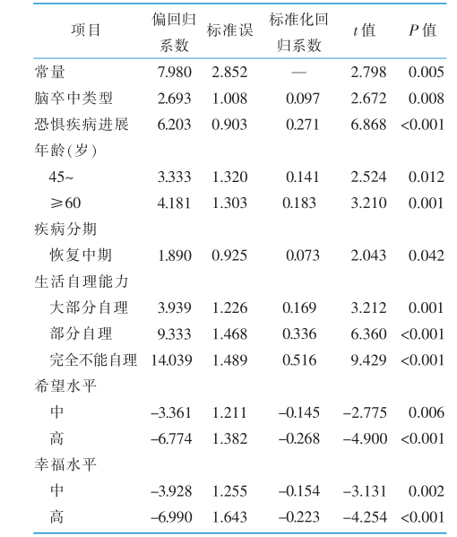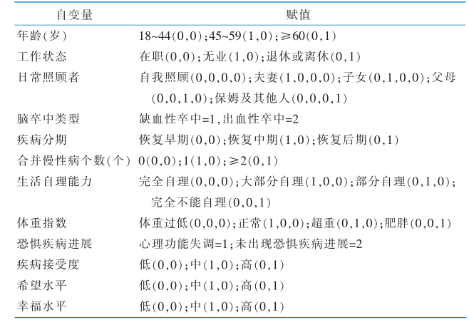 鲍金雷, 杨庆爱, 张俊, 等. 脑卒中半失能老年患者复发恐惧的调查研究[J]. 中华护理杂志, 2021, 56(11):1661-1666.