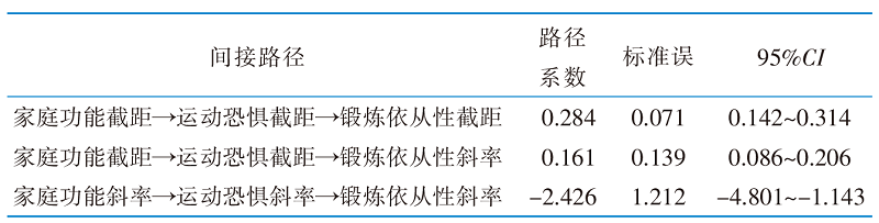 表5 运动恐惧在老年邻近椎体再骨折患者家庭功能及锻炼依从性间的纵向中介模型中的间接路径(n=232)