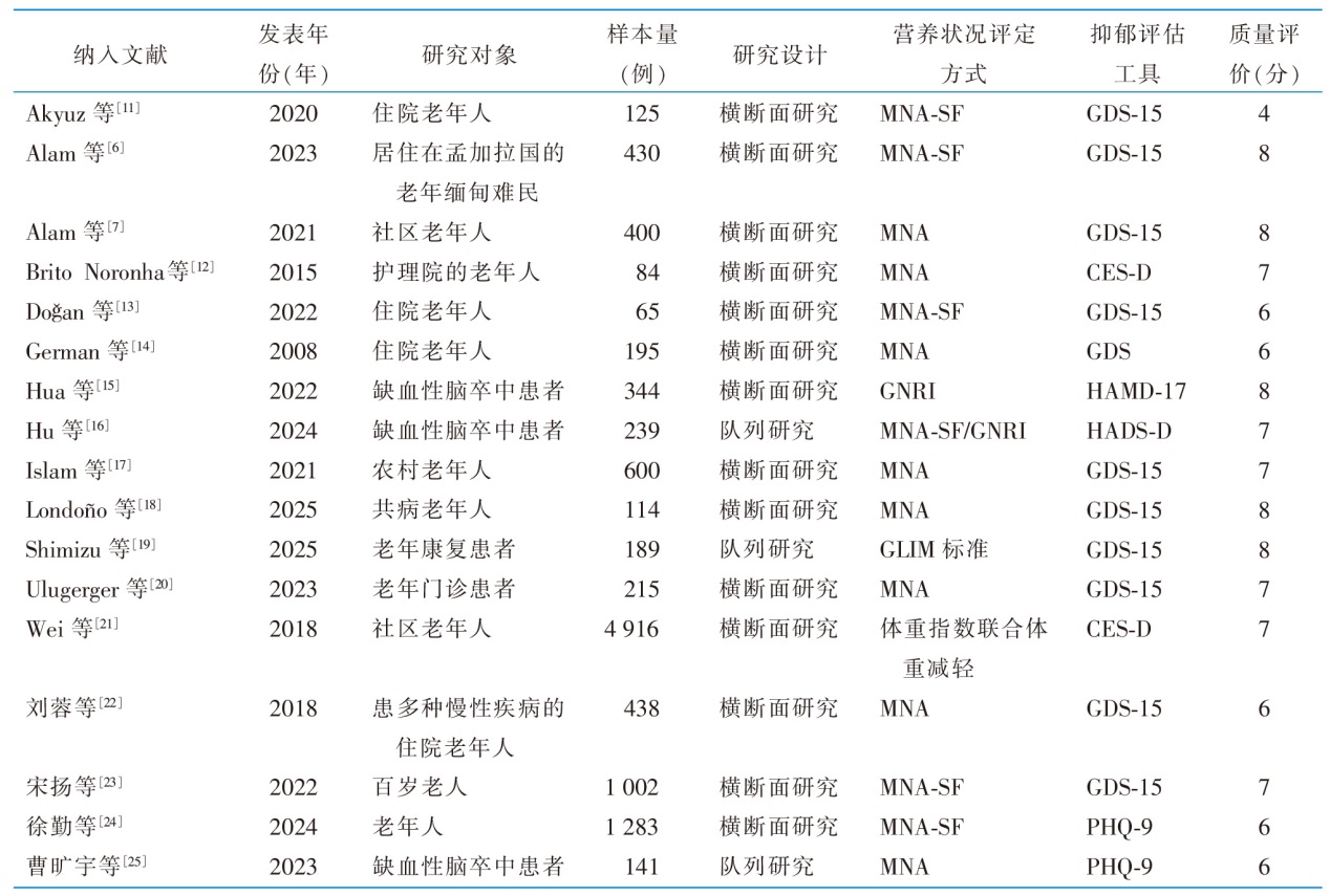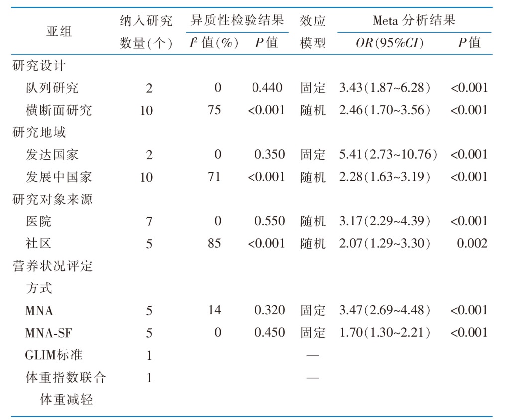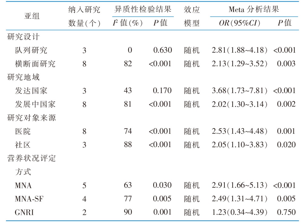 营养不良或存在营养不良风险与老年人抑郁关系的Meta分析