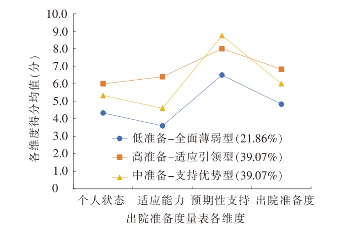 图1 老年髋部骨折患者出院准备度3个潜在剖面的特征分布