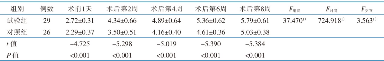 目的 评估术前量化加压束臂运动对围透析期患者自体动静脉内瘘(internal arteriovenous fistula,AVF)成熟的影响,为临床护理实践提供参考。 方法 采用单中心、开放、随机对照研究设计,选取2022年1月—2023年12月南京市某三级甲等医院血液净化中心首次拟行AVF成型术的60例患者作为研究对象,按计算机产生的随机序列号分为试验组30例和对照组30例。试验组术前2周给予量化加压束臂运动,压力为10 mmHg(1 mmHg=0.133 kPa),每次15~20 min,每天5次,持续2周。对照组术前2周开始给予非量化束臂运动,频次、持续时间同试验组。比较两组术前第1天,术后2、4、6、8周头静脉血管内径以及血流量,并且于第8周评估内瘘成熟率。同时观察血栓形成以及血管狭窄等并发症。 结果 试验组最终纳入29例,对照组最终纳入26例。试验组AVF成熟率高于对照组(P<0.05),且术后第8周成熟时间短于对照组(P<0.05)。内瘘头静脉血管内径以及内瘘血流量不同组间、时间点和交互作用均有统计学意义(P<0.05)。 结论 术前量化加压束臂运动能够保障血液透析患者AVF安全的同时改善血管条件,扩大血管内径,促进AVF成熟,减少血栓、血管狭窄等并发症。