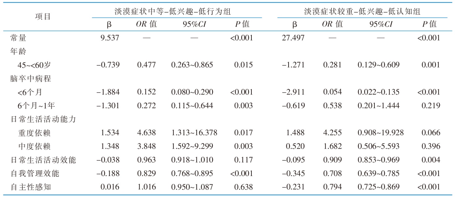 脑卒中患者淡漠症状的潜在剖面及影响因素研究