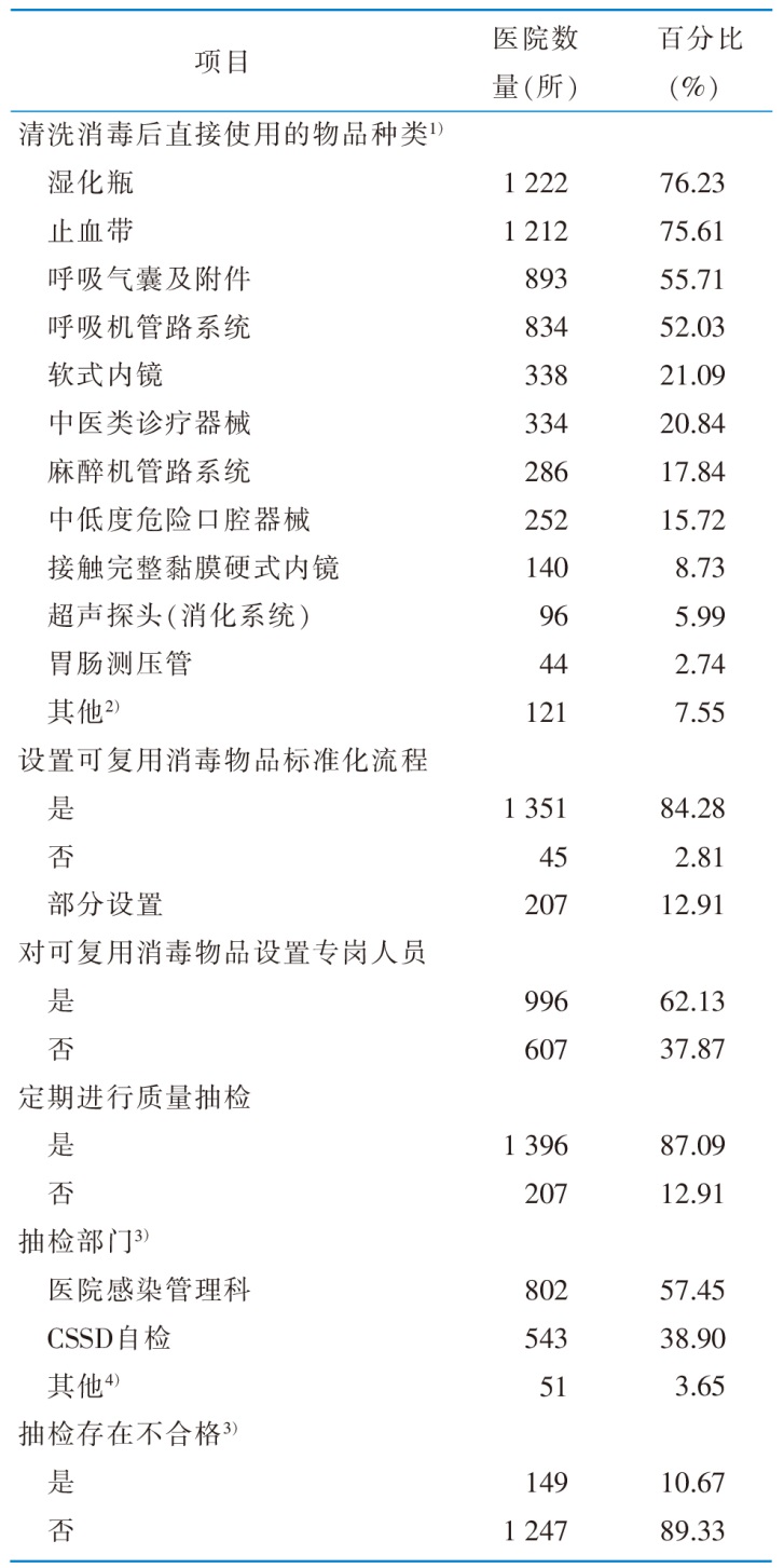 LI Xiaoli, LI Baohua, KANG Jie, FU Wenjun, NIU Chang, OU Shan, LI Xue. Investigation of the reprocessing of multiplexing disinfectant items in central sterile supply departments of 1 603 hospitals in China[J]. Chinese Journal of Nursing, 2025, 60(13): 1631-1637.