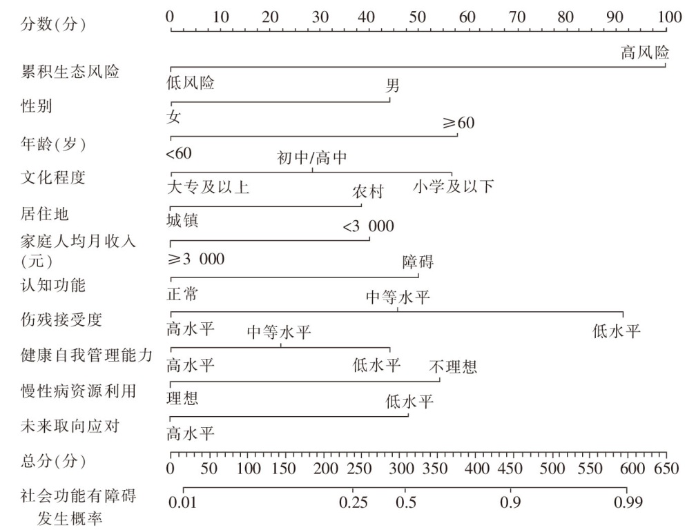 中老年缺血性脑卒中患者社会功能障碍风险预测模型的构建及验证