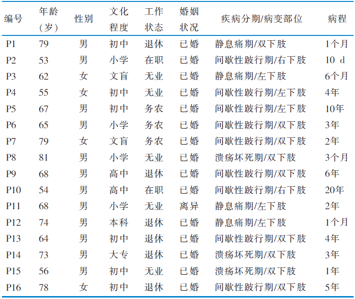 罗小琴, 夏良香, 曾永珂, 郑燕, 郑思琳. 下肢动脉硬化闭塞症患者久坐行为改变困境的质性研究[J]. 中华护理杂志, 2025, 60(18): 2252-2257.