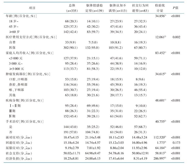 XU Ping, YAN Rong, ZHANG Miaomiao, LIU Wenhui, JIANG Kai. Latent profile analysis and influencing factors of body image among patients with head and neck cancer[J]. Chinese Journal of Nursing, 2025, 60(2): 215-222.