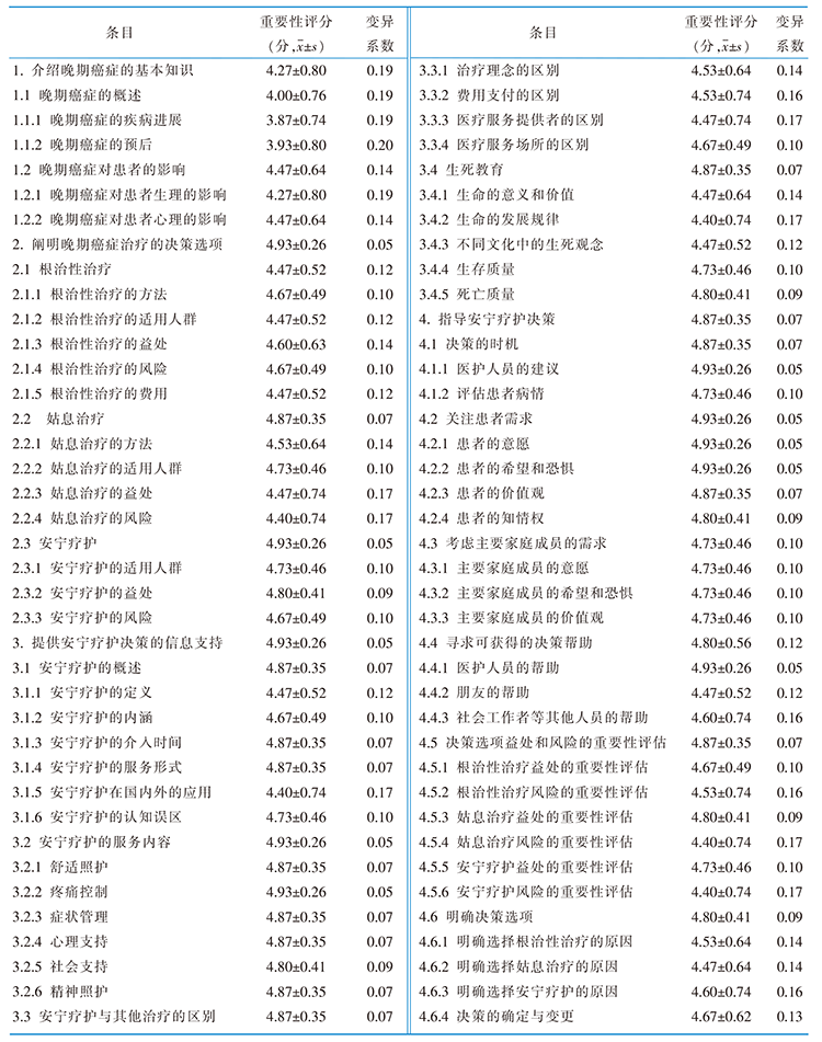 晚期癌症患者家属安宁疗护决策支持教育方案的构建和应用研究