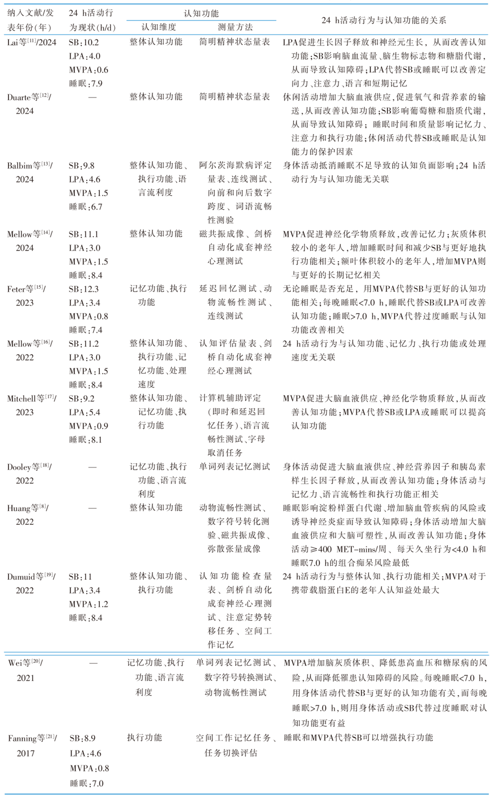 袁佳燕, 钟松梅, 郑心怡, 吴美倩, 肖进, 江碧艳, 刘彩霞. 老年人24 h活动行为与认知功能关系的范围综述[J]. 中华护理杂志, 2025, 60(12): 1517-1523.