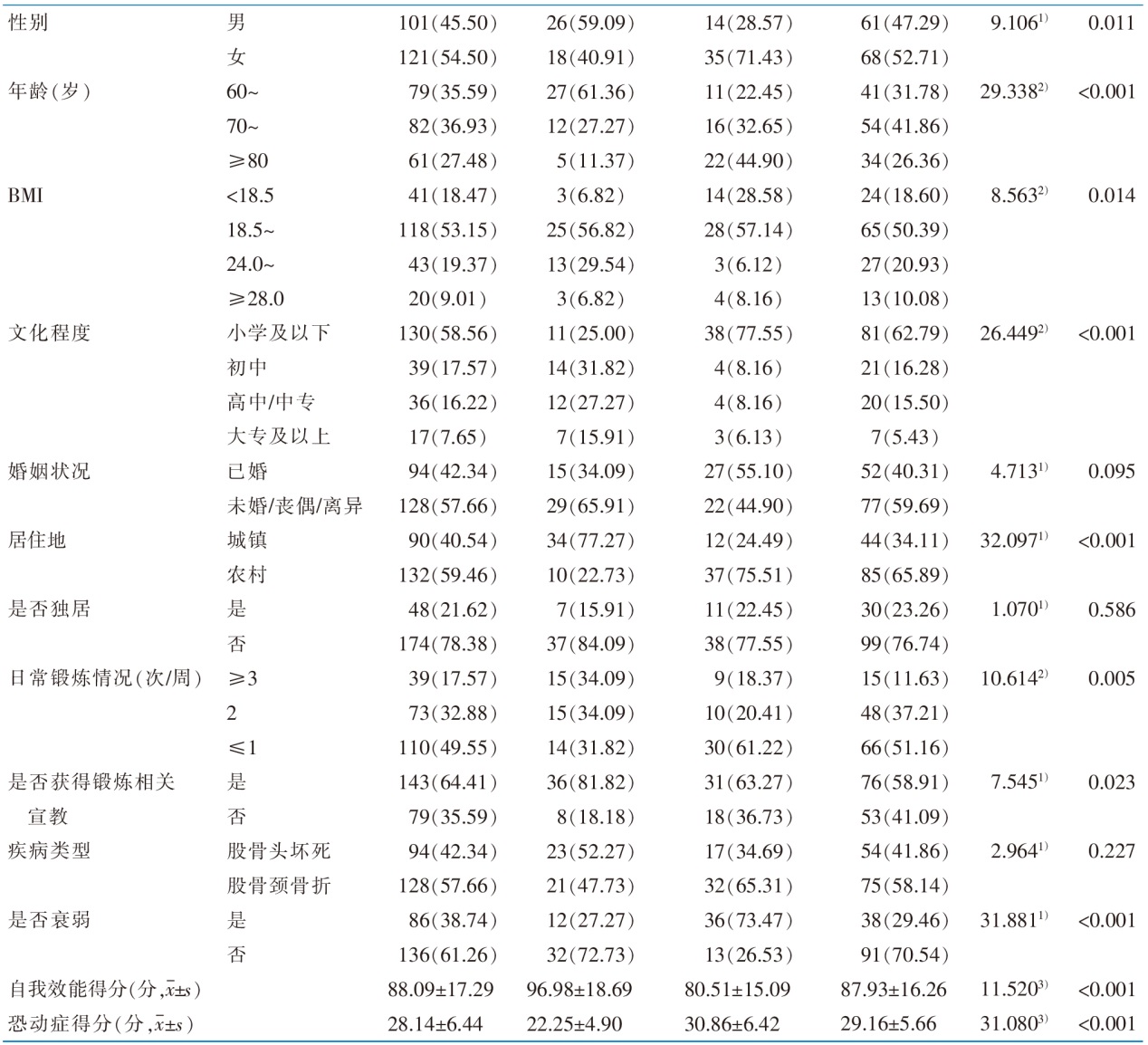 老年髋关节置换术患者运动感知的分型预测及护理启示